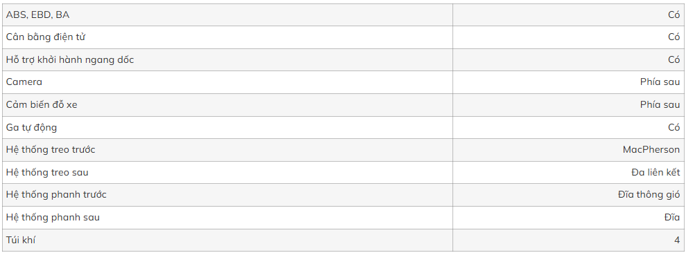 Cấu trúc an toàn trên mẫu MPV gia đình VinFast VF MPV 7 bao gồm hệ thống phanh đĩa thông gió phía trước và phanh đĩa phía sau, tích hợp các công nghệ ABS, EBD, BA và cân bằng điện tử.