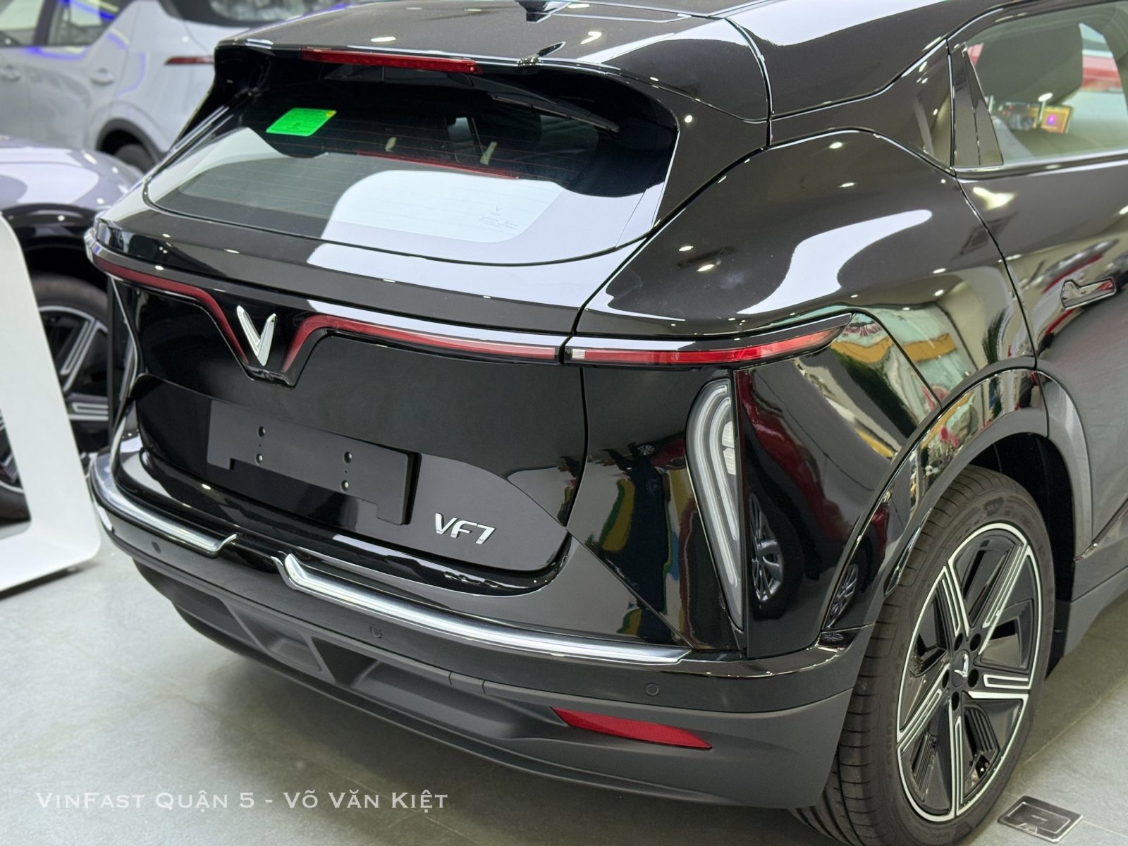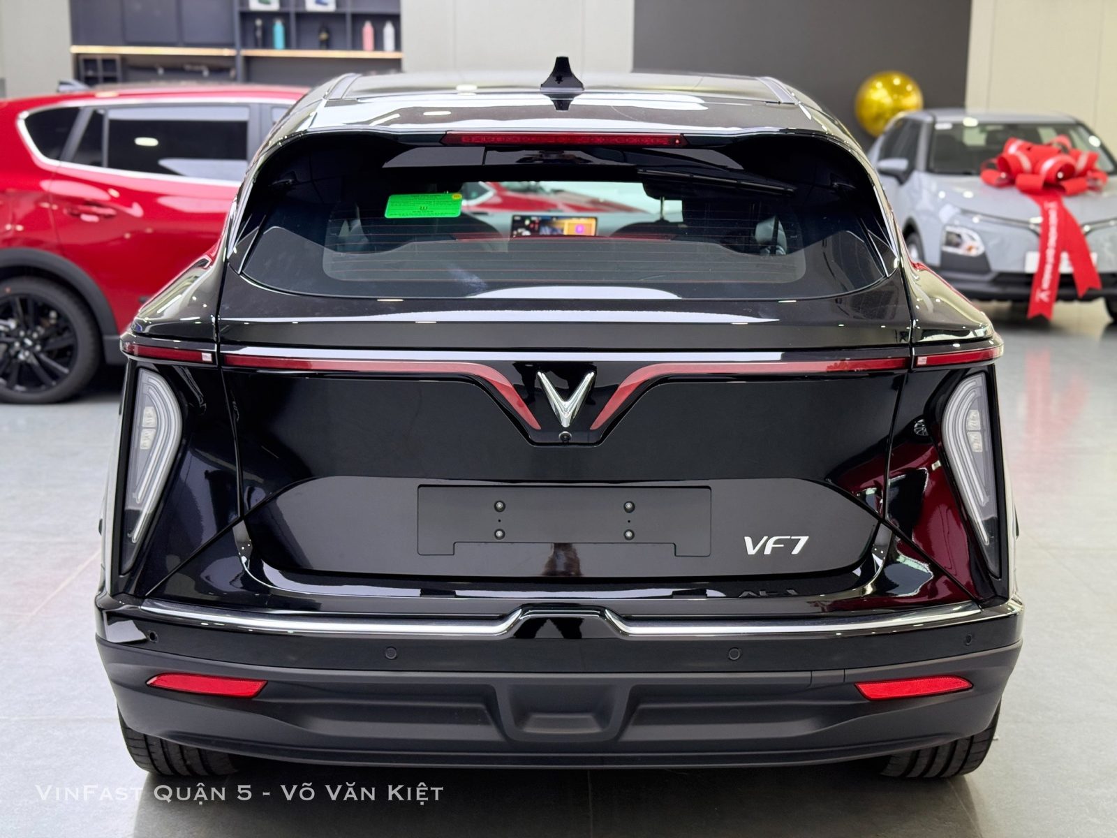 Đuôi xe VF 7 được thiết kế dải đèn LED hình chữ “V” quen thuộc, đặc trưng của thương hiệu VinFast. Bên cạnh đó, đèn lùi được trang bị hướng về hai bên viền xe. Chính giữa khu vực gắn biển số được sơn màu đen tạo sự tương phản, nổi bật, ấn tượng mạnh cho người nhìn.